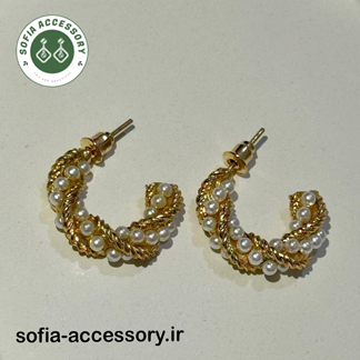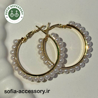 گوشواره حلقه ای میخی با مروارید ریز کد 103...